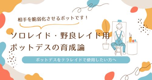 みなさん、こんにちは。洋之介です。 今回は、ソロレイド・野良レイド用ポットデスの育成論を紹介します。 この記事を読んだ方で、何か役に立った方がいれば嬉しいです。
